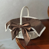 Кошик білий «Хінська» 34x29x14 см з лози з коричневим чохлом, полотенцем і бантиком пасхальний, корзина плетена