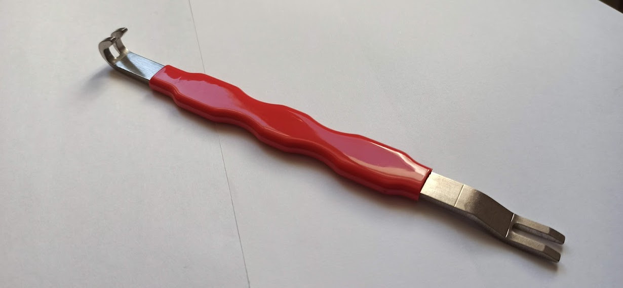 ПРОСТИЙ у ВИКОРИСТАННІ ---- Інструмент для видалення двостороннього електричного роз'єму автомобіля. Дозволяє швидко і легко від'єднати роз'єм живлення без пошкоджень. Технічні характеристики ---- Інструмент для видалення сепаратора роз'ємів електричних клем автомобіля, матеріал: гума + алюмінієвий сплав, довжина: приблизно 19 см / 7,5 дюймів, може використовуватися для електричних роз'ємів більшості автомобілів і комерційних транспортних засобів. У комплект входить: 1 x інструмент для видалення клемного сепаратора